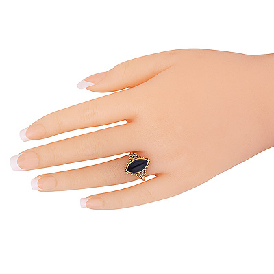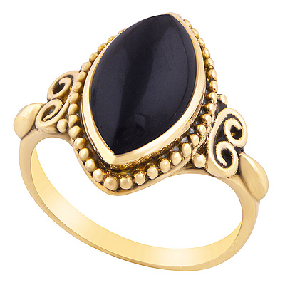 Beautifully Handcrafted Work Around Black Onyx Marquise Shape Solid Brass Ring