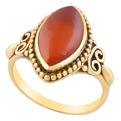 Beautifully Handcrafted Work Around Carnelian Marquise Shape Solid Brass Ring