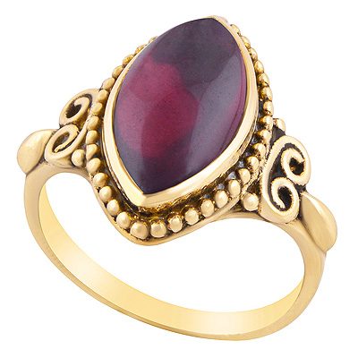 Beautifully Handcrafted Work Around Garnet Marquise Shape Solid Brass Ring
