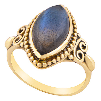 Beautifully Handcrafted Work Around Labradorite Marquise Shape Solid Brass Ring