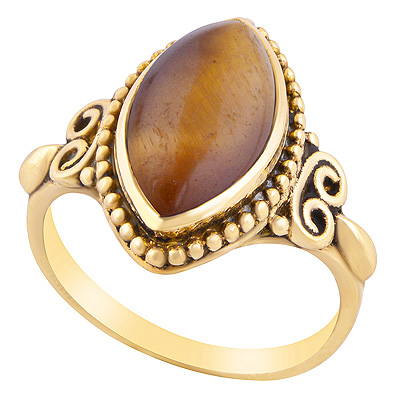 Beautifully Handcrafted Work Around Tiger's Eye Marquise Shape Solid Brass Ring