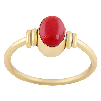 Beautiful Handcrafted Work Around Coral Oval Shape Solid Brass Ring