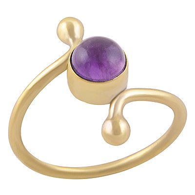 Minimal Beautifully Designed Shank Amethyst Round Shape Solid Brass Ring