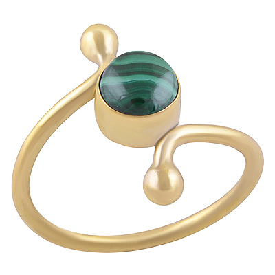 Minimal Beautifully Designed Shank Malachite Round Shape Solid Brass Ring