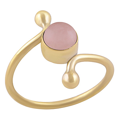 Minimal Beautifully Designed Shank Rose Quartz Round Shape Solid Brass Ring