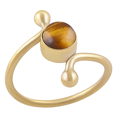 Minimal Beautifully Designed Shank Tiger's Eye Round Shape Solid Brass Ring