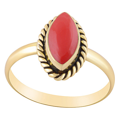 Home | Fashion Rings | Brass Gemstone Rings | Authentic Wire Work Around Coral Marquise Shape Solid Brass Ring