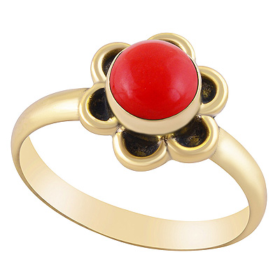 Beautiful Handcrafted Work Around Coral Round Shape Solid Brass Ring