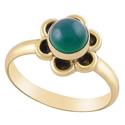Beautiful Handcrafted Work Around Green Onyx Round Shape Solid Brass Ring