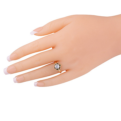 Beautiful Handcrafted Work Around Pearl Round Shape Solid Brass Ring