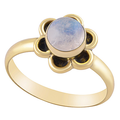 Home | Fashion Rings | Brass Gemstone Rings | Beautiful Handcrafted Work Around Rainbow Moonstone Round Shape Solid Brass Ring