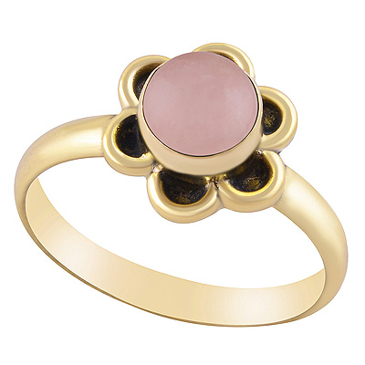 Beautiful Handcrafted Work Around Rose Quartz Round Shape Solid Brass Ring