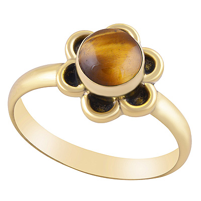 Beautiful Handcrafted Work Around Tiger's Eye Round Shape Solid Brass Ring