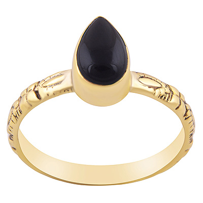 Stunning Textured Work Band Around Black Onyx Pear Shape Solid Brass Ring