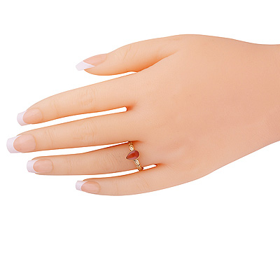 Stunning Textured Work Band Around Coral Pear Shape Solid Brass Ring