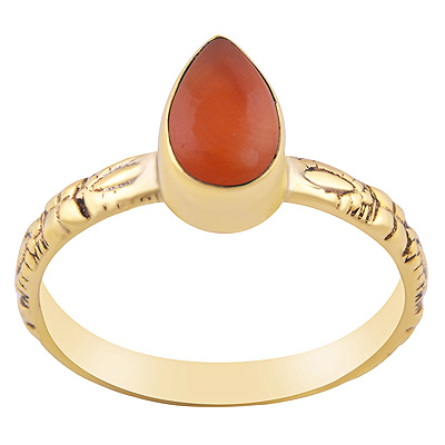 Stunning Textured Work Band Around Carnelian Pear Shape Solid Brass Ring