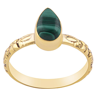 Stunning Textured Work Band Around Malachite Pear Shape Solid Brass Ring