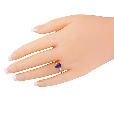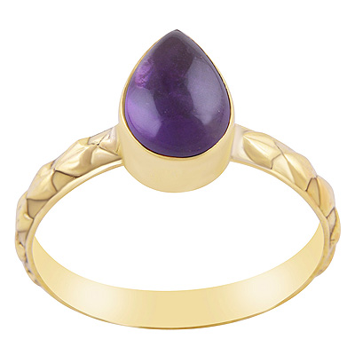 Home | Fashion Rings | Brass Gemstone Rings | Gorgeous Textured Work Band Around Amethyst Pear Shape Solid Brass Ring