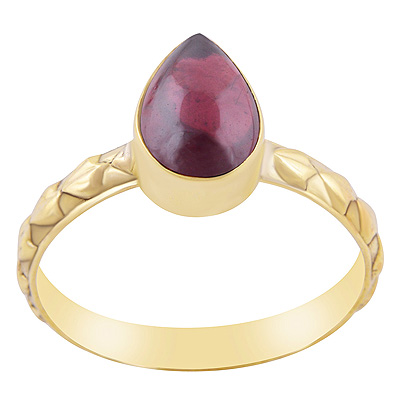 Home | Fashion Rings | Brass Gemstone Rings | Gorgeous Textured Work Band Around Garnet Pear Shape Solid Brass Ring