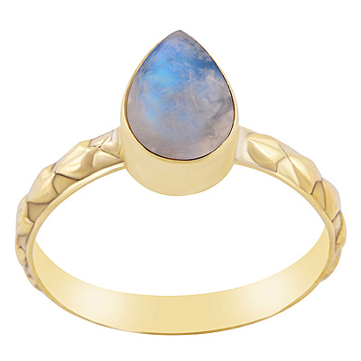 Home | Fashion Rings | Brass Gemstone Rings | Gorgeous Textured Work Band Around Rainbow Moonstone Pear Shape Solid Brass Ring