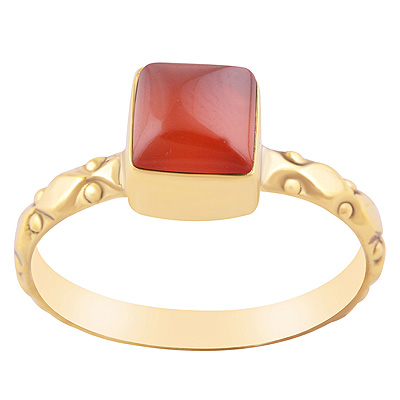 Beautifully Handcrafted Work Band Around Carnelian Square Shape Solid Brass Ring