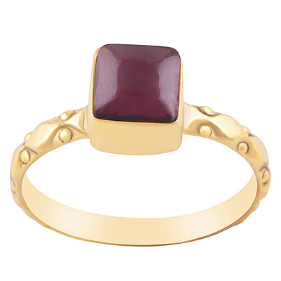 Beautifully Handcrafted Work Band Around Garnet Square Shape Solid Brass Ring