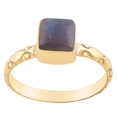 Beautifully Handcrafted Work Band Around Labradorite Square Shape Solid Brass Ring