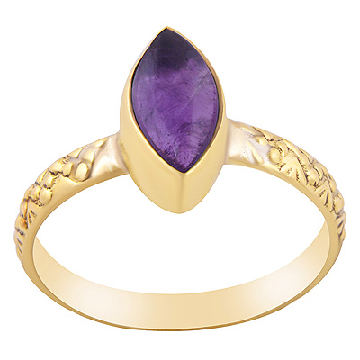 Beautifully Textured Work Band Around Amethyst Marquise Shape Solid Brass Ring