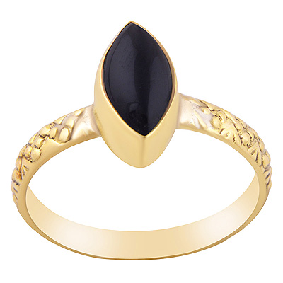 Beautifully Textured Work Band Around Black Onyx Marquise Shape Solid Brass Ring