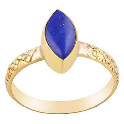 Beautifully Textured Work Band Around Lapis Marquise Shape Solid Brass Ring