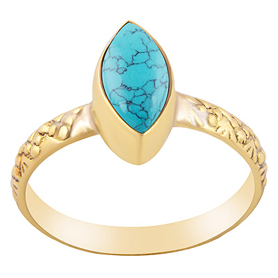 Beautifully Textured Work Band Around Turquoise Marquise Shape Solid Brass Ring
