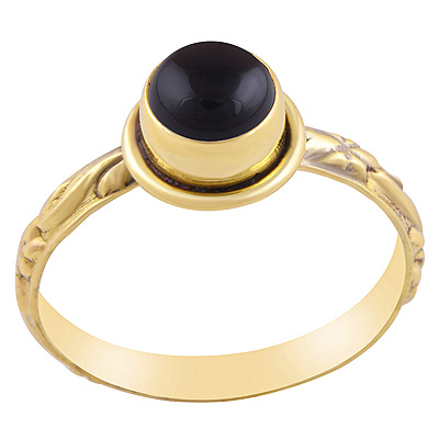 Beautiful Minimal Texture Band Around Black Onyx Round Shape Solid Brass Ring