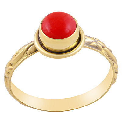 Beautiful Minimal Texture Band Around Coral Round Shape Solid Brass Ring