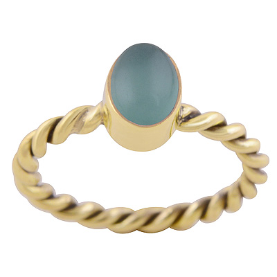 Alluring Twisted Shank Around Blue Chalcedony Oval Shape Solid Brass Ring