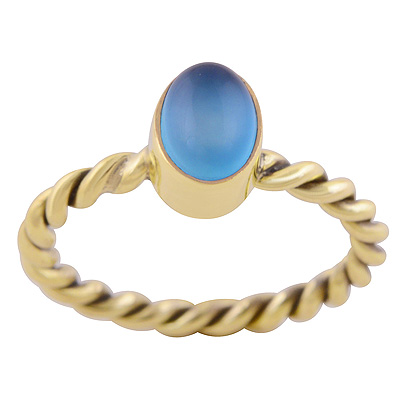 Alluring Twisted Shank Around Blue Chalcedony Oval Shape Solid Brass Ring