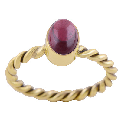 Alluring Twisted Shank Around Garnet Oval Shape Solid Brass Ring