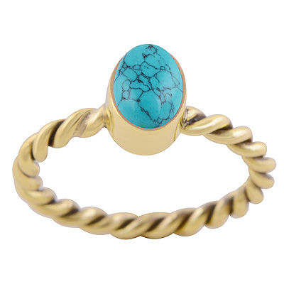 Alluring Twisted Shank Around Turquoise Oval Shape Solid Brass Ring