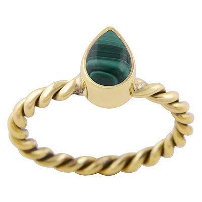 Home | Fashion Rings | Brass Gemstone Rings | Gorgeous Twisted Shank Around Malachite Pear Shape Solid Brass Ring