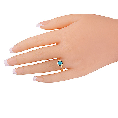 Beautiful Plain Wire Work Around Turquoise Round Shape Solid Brass Ring