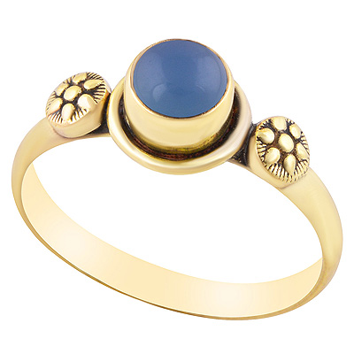 Home | Fashion Rings | Brass Gemstone Rings | Alluring Handcrafted Work Around Blue Chalcedony Round Shape Solid Brass Ring