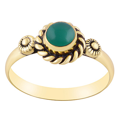 Home | Fashion Rings | Brass Gemstone Rings | Gorgeous Handwork Work Around Green Onyx Round Shape Solid Brass Ring