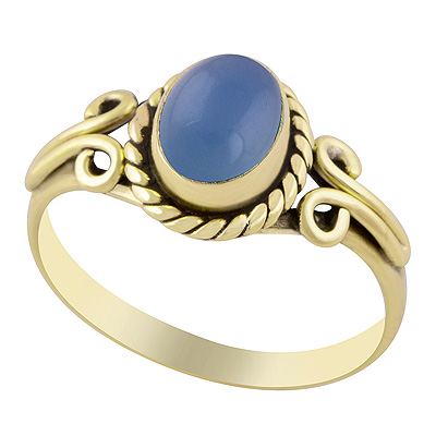 Beautiful Handcrafted Work Around Blue Chalcedony Oval Shape Solid Brass Ring