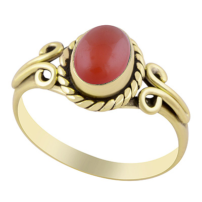 Beautiful Handcrafted Work Around Carnelian Oval Shape Solid Brass Ring