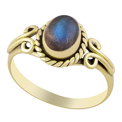 Beautiful Handcrafted Work Around Labradorite Oval Shape Solid Brass Ring