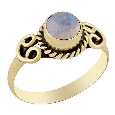 Home | Fashion Rings | Brass Gemstone Rings | Gorgeous Handcrafted Work Around Rainbow Moonstone Round Shape Solid Brass Ring