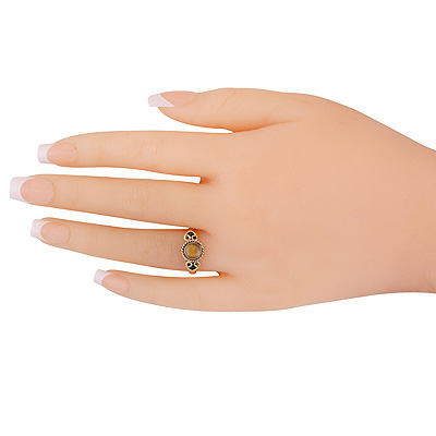 Home | Fashion Rings | Brass Gemstone Rings | Gorgeous Handcrafted Work Around Tiger's Eye Round Shape Solid Brass Ring