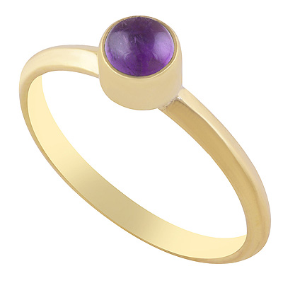 Beautiful Seated Gemstone Amethyst Round Shape Solid Brass Ring
