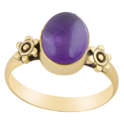 Home | Fashion Rings | Brass Gemstone Rings | Alluring Flower Around Amethyst Oval Shape Solid Brass Ring
