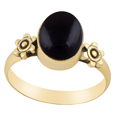 Home | Fashion Rings | Brass Gemstone Rings | Alluring Flower Around Black Onyx Oval Shape Solid Brass Ring