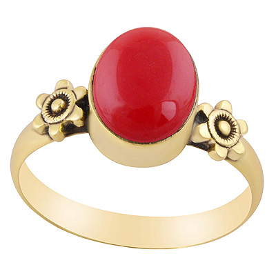 Home | Fashion Rings | Brass Gemstone Rings | Alluring Flower Around Coral Oval Shape Solid Brass Ring